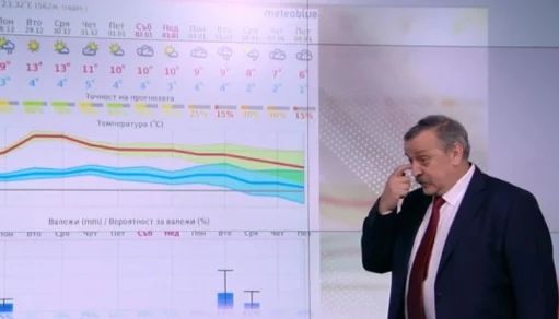 „Имаме аномалия в момента. 2-3 градуса над температурите, типични за декември“, обясни климатологът. „Средиземноморският циклон ще мине България, след което отива на север. Този циклон ще определя времето през следващите дни. В понеделник ще продължи да вали над Източна България.